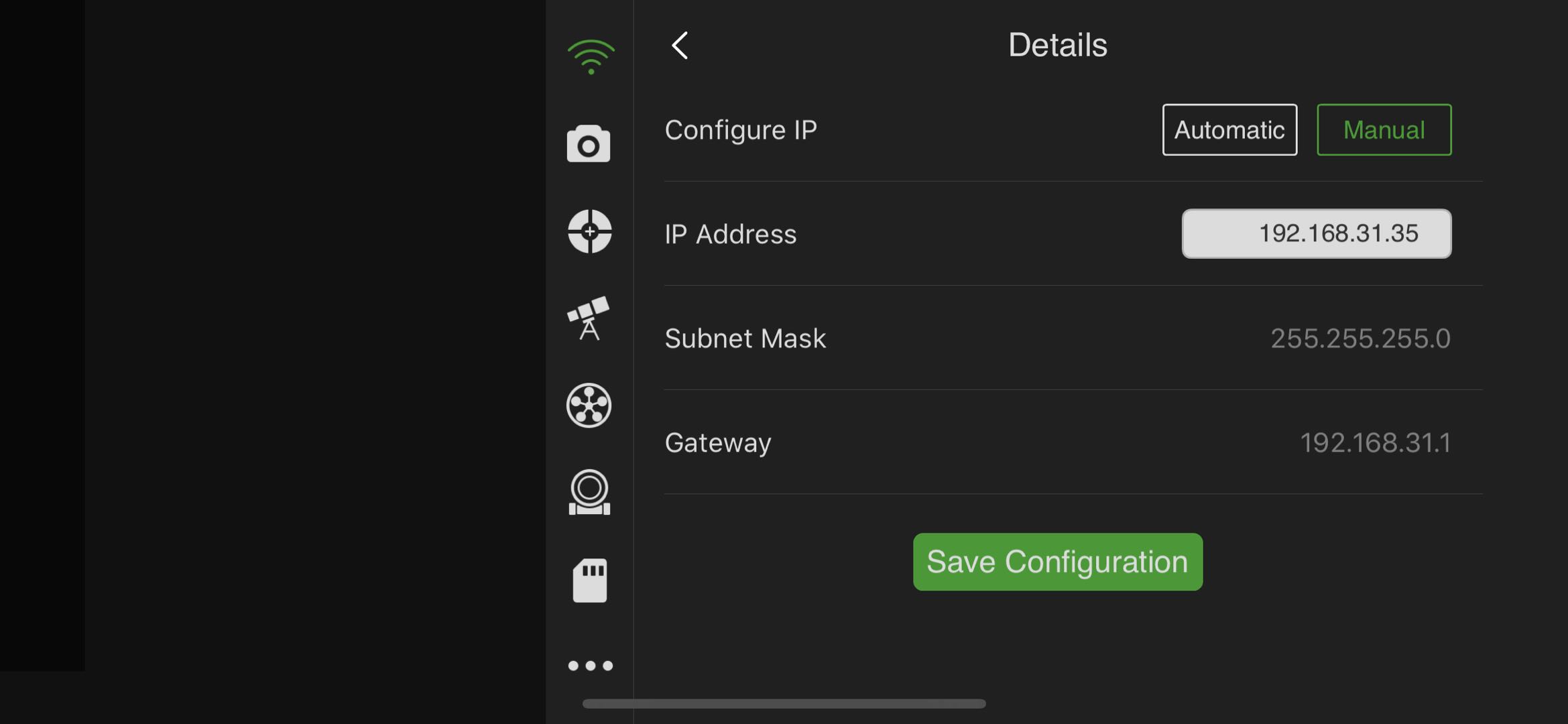 Added Static IP Address configuration for wired Ethernet connection, more convenient when using Vixen mounts